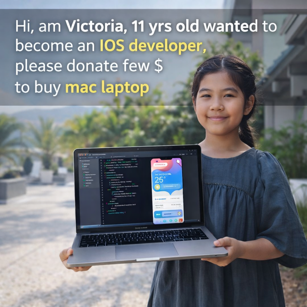 Unfortunately, due to financial limitations, we are unable to provide her with the essential tools she needs β especially a Mac laptop required for iOS development.